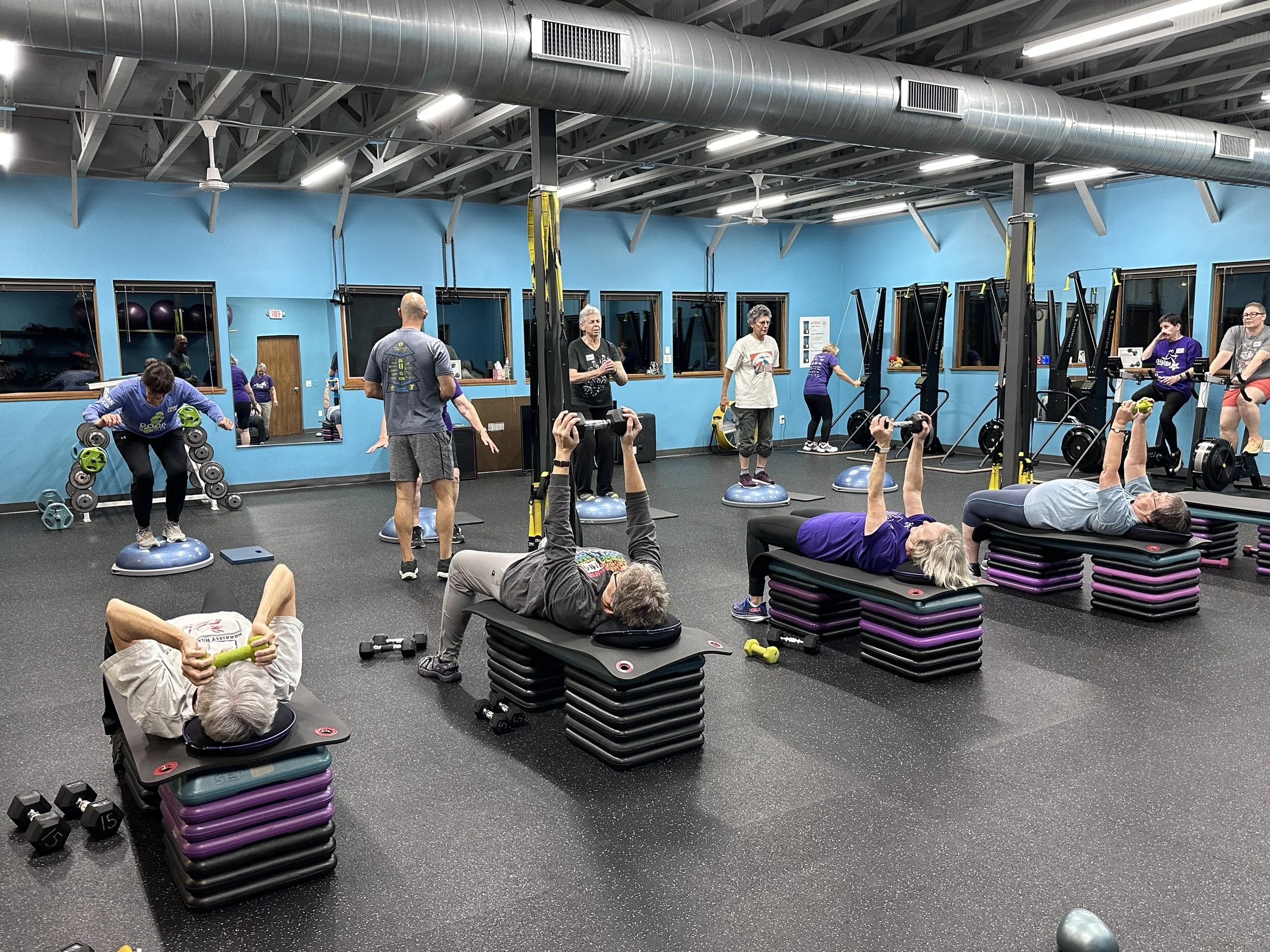 Members participate in classes focusing on strength, flexibility and balance. These are offered as in-person classes and occasional virtual fitness sessions.